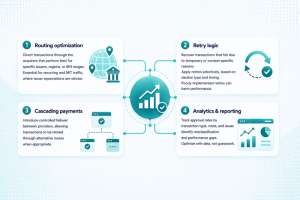 The real impact comes from combining two layers. First, a solid foundation: correct classification, clear consent, and consistent signaling under the stored credential framework. Second, intelligent execution: routing, retries, and failover strategies that adapt to issuer behavior and real-world performance.
